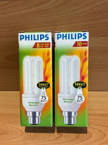 2 X Philips Energy Saver CFL Stick Light Bulbs BC/B22 Lamps 14W (=75W) Bayonet