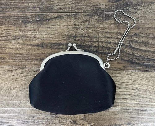 Vintage Small 4" Black Kiss Lock Coin Purse Pouch Clasp Chain