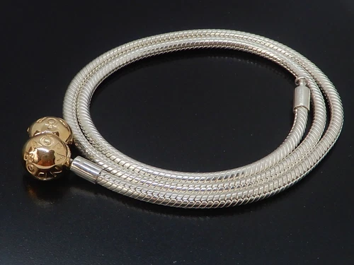 Authentic Pandora Silver & 14k Gold Clip/Clasp) Lock Charm Necklace 590742HG 42