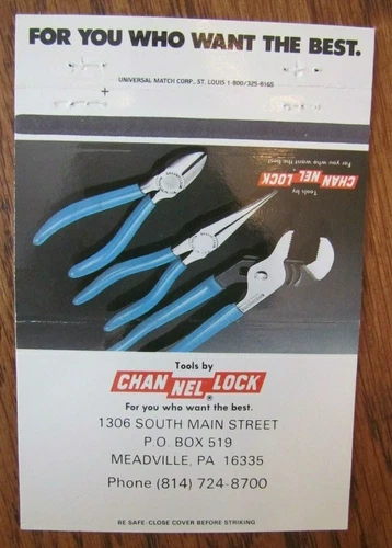 MATCHBOOK: CHANNELLOCK TOOLS (MEADVILLE, PENNSYLVANIA) (MATCHORAMA) -F17