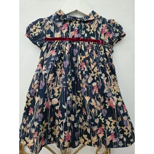 Marie Chantal Floral Dress Girl's 24M Peter Pan Collar Velvet Trim Navy