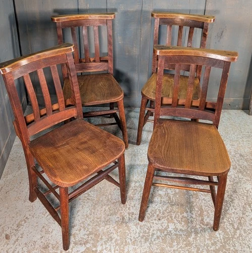 Set of 4 1920’s Vintage Medium to Dark Colour Slat Back Church Chapel Chairs