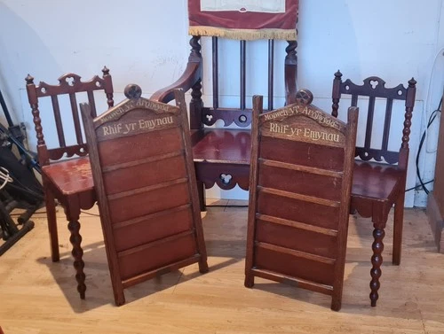 Original Welsh Chapel Chairs And Hymm Boards With Lecturn Cover