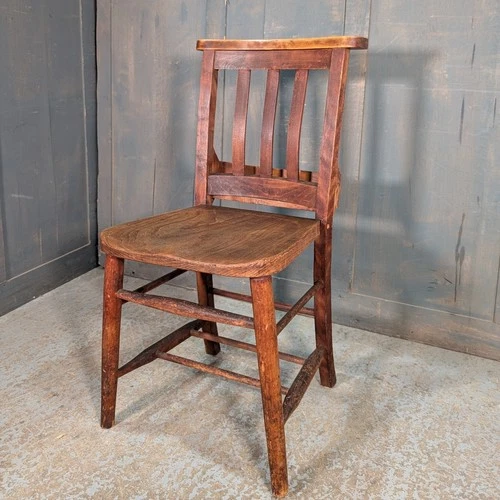 1920’s Vintage Medium to Dark Colour Slat Back Church Chapel Chairs