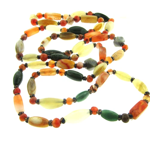 Vintage Carnelian Agate Bloodstone Bead Necklace Strand 12mm 64 inch