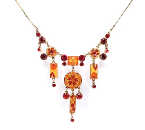 Pilgrim Gold Tone Enamel Flower Necklace Red Swarovski Crystal Dangle Statement