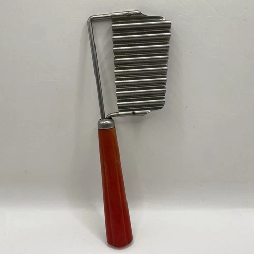 Vintage Red Bakelite Cheese Vegetable Crinkle Cutter Stainless Kitchen Utensil