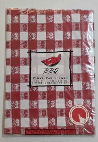 Town & Country Living BBQ Oblong Vinyl Tavern Check Red Cherry Tablecloth 60x84
