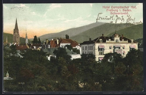 Freiburg / Breisgau, Hotel Europäische Hof, Postcard 1908