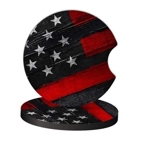 2 Pcs Car Cup Coasters Universal Non 2.75 Inch Red Wood Grain American Flag