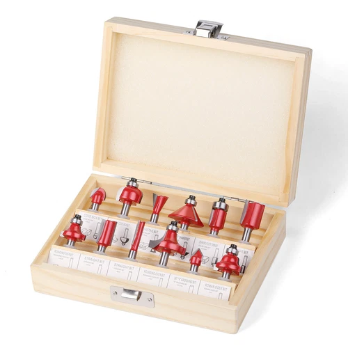12PCS Set 6mm 1/4 1/2 Shank Router Bits Wood Case Cove Box/Chamfer/Dovetail