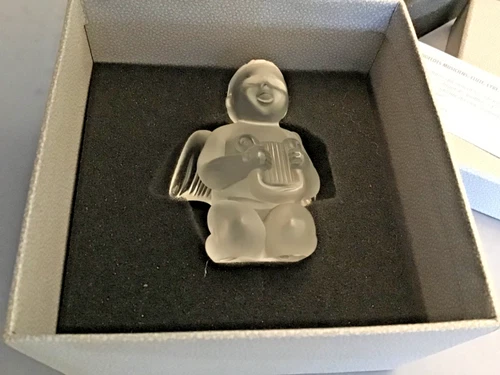 VINTAGE LALIQUE CRYSTAL CHERUB ANGEL WITH LYRE 1999 NEW AND BOXED