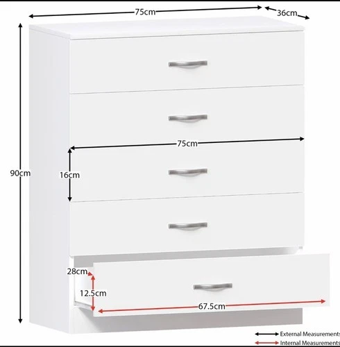 Riano 5 Drawer Chest of Drawers - Modern Bedroom Drawer Unit with Storage Tall