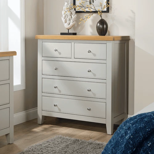 Fully Assembled Chest Of 5 Drawers Solid Wood Bedroom Furniture Grey Painted Oak