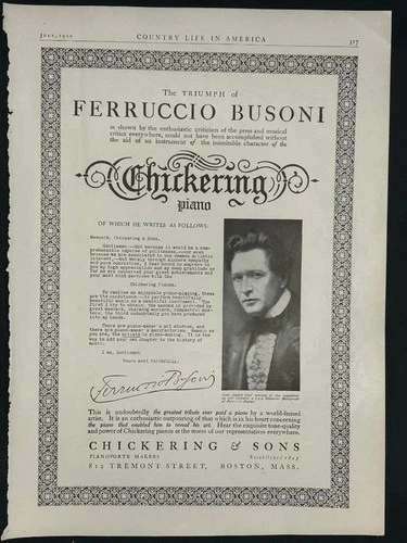 Magazine Ad* - 1910 - Chickering Piano Co. Boston, MA - Ferruccio Busoni