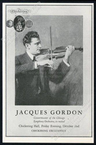 1925 Jacques Gordon & violin portrait Chickering piano vintage trade print ad