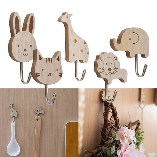 Children's Wall Hooks Wooden Animal Hooks Creative Arrangement Hassle-Free Setup