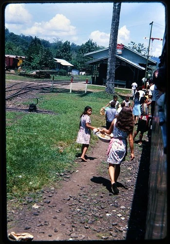 35mm Slide Turrialba Costa Rica Railway Station Vendors Train 1970