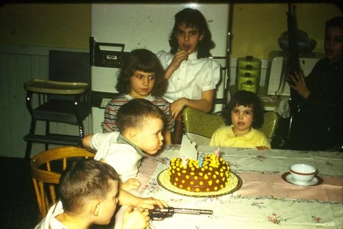 1960 Kodachrome 35mm Slide Children Birthday Cake Toy Kitchen USA Family