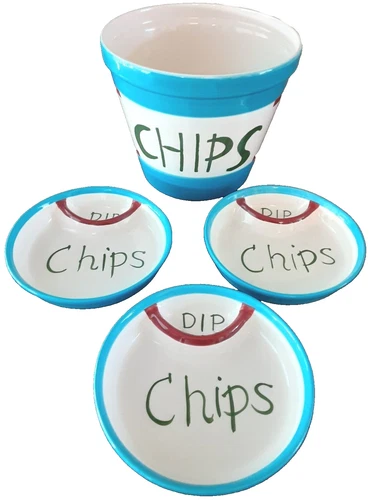 Dip & Chip Set of 4 Large Bowl & 3 Plates Tabletops Unlimited Kitchen Prep 101