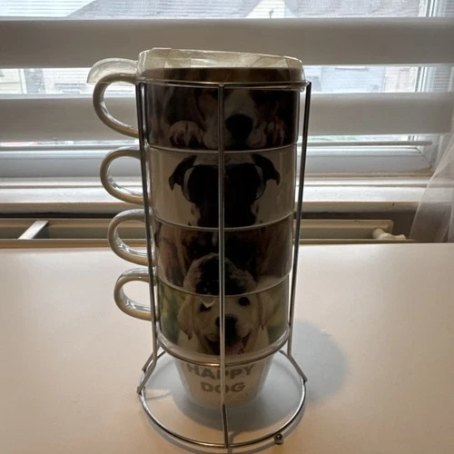 NEXT STACKING SET OF MUGS WITH DOGS - 3 perfect, one chipped, new in pack