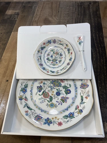 Sadek India Garden Party Serving Chip Dip 3 Piece Set Scalloped Floral Gold Trim