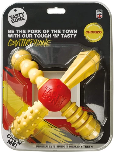 Tastybone Quattrobone Nylon Dog Chew Toy for Large Dogs (Chorizo) - Indestructib