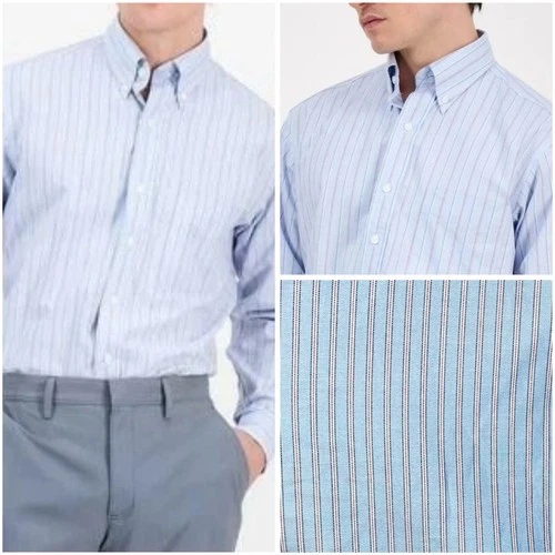 Club Room Medium 15 1/2 Regular Fit Blue Red Stripe Long Sleeve Dress Shirt New