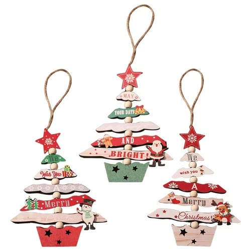 3pcs Christmas Tree Wooden Pendant Hanging Ornaments Xmas Party Decor