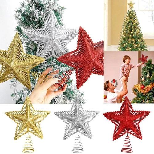 Glitter Christmas Tree Topper Iron Star Christmas Home Xmas Tree Ornaments C7B8
