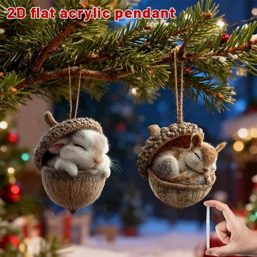 6pcs Acrylic Cute Forest Animal Christmas Trees Hanging Decorations 2D/