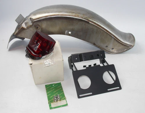 VINTAGE REAR FENDER MUD GUARD+TAILIGHT+BRACKET FAT BOB HARLEY BIG TWIN TO 1984