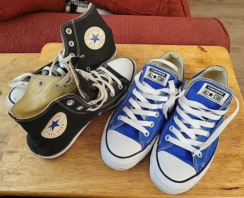 Size 6 - Converse Chuck Taylor All Star High Black & Low Blue Lot Of 2 Pairs