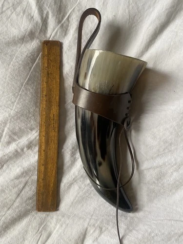 viking drinking horn with leather holster - 10 inch - new