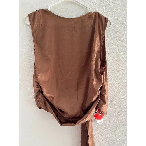 Cider Womens XL Brown Open Back Tie Sleeveless Top Satin Chic Luxury Minimalist