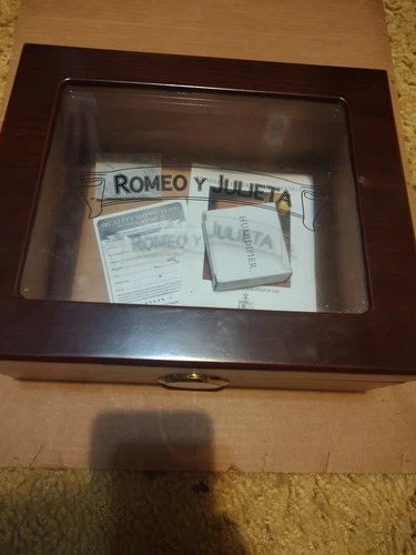 ROMEO Y JULIETA Cigar Humidor Lacquer Case Glass Top Cedar Sure Seal Technology