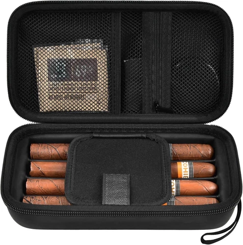 Cigar Case, 4 Finger Humidors Cigars Box with Humidifier. Cigar Travel Holder fo