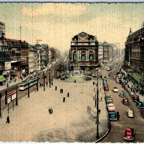 c1950s Brussels, Belgium De Brouckere Place Cinema Tramway Cars Shops Signs A354