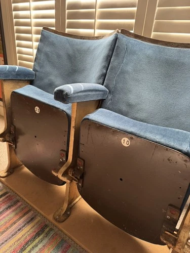 Twin Art Deco Cinema Theatre Seats 2 Chair Fold Up Two Seat Vintage
