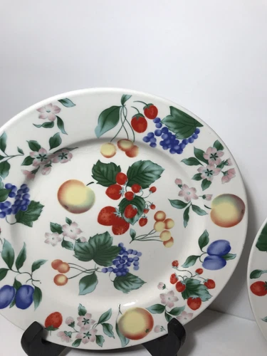 VTG Colorful Fruit All Over Dinner Plates Porcelain 10” By Allied Design EUC