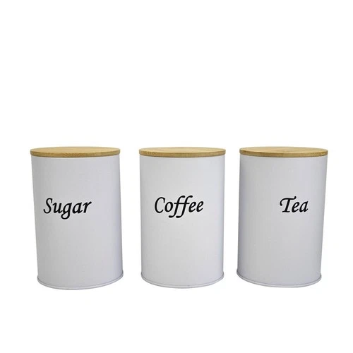 Airtight Metal Coffee Tea Sugar Jars 3 Piece Kitchen Canister Storage Set