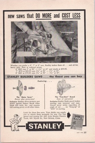 Stanley Builders Saws Circular Saw Ad Vintage Original Print 1956 Power Tool