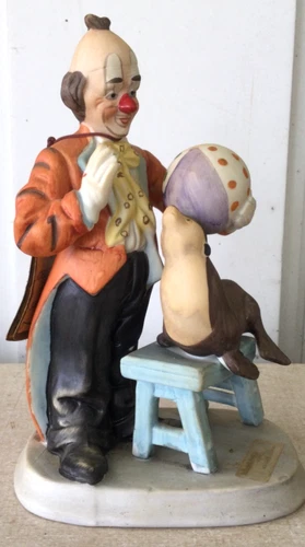 Arnart Imports Vintage Clown & Seal Porcelain Figurine w/ Original Tag