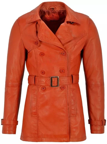 Design New Women Orange Leather Trench Coat Mid-Length Real Lambskin Causal coat