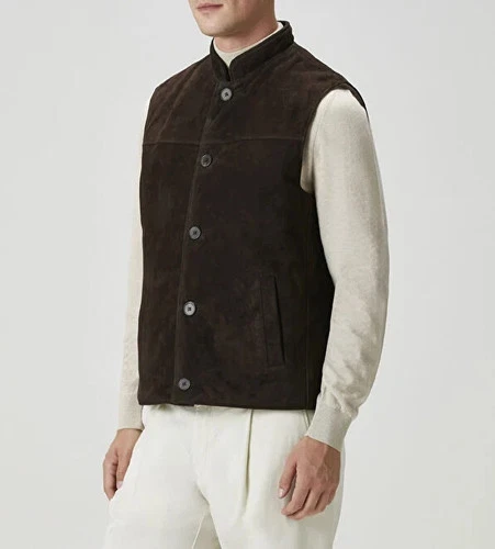 Men's Dark Brown Suede Vest Coat Soft Sheepskin Classic Stylish