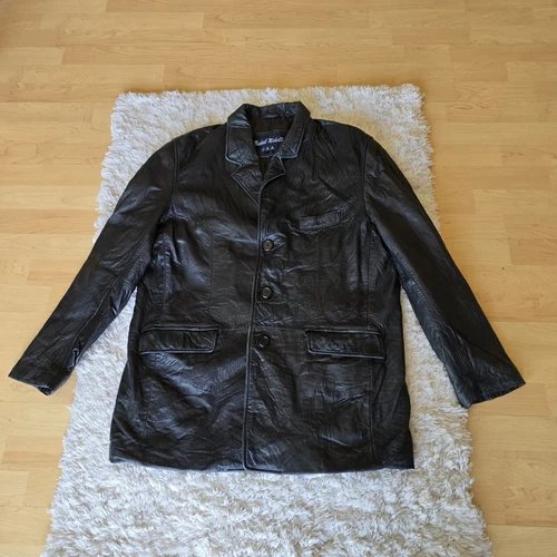 Michael Michelle Mens Leather Jacket Size L Zip Up Lined Biker Overcoat Black