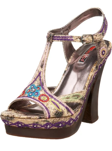 Two Lips Womens 9 Bolero Sandal Heels Embellished Colorful Embroidered Floral