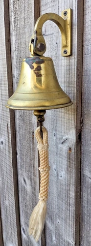 Vintage Solid Brass Bell Wall Mount Clanger & Rope