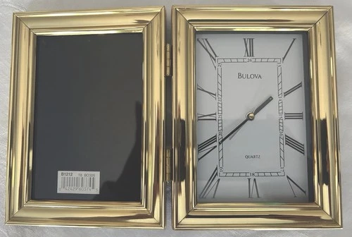 Bulova Folding Travel Alarm Clock Gold Tone Photo Frame Vintage Working