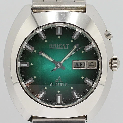 Dead Stock Level Working ORIENT EM2V CO Green Dial AT Automatic Men s Wristwatc